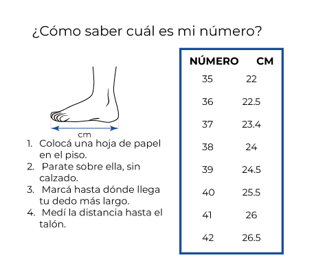 Nota de la horma: Horma justa. Si tenes dudas sobre el calce de este producto escribinos y te asesoramos personalmente.