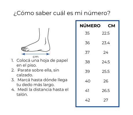 Nota de la horma: calce normal, súper cómodo. Te recomendamos comprar el número que usas habitualmente.